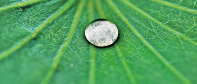 マットマックスの塗膜表面構造は、サトイモやハスの葉のように微細な凹凸形状を持っています。この形状により塗膜の表面に付着する水は徹底的に弾かれ、丸まりガラスビーズのように転がりながら、外壁の表面に付着した汚れを絡め取って落とします。この高い撥水性能が、長期間住まいの外観を美しく保ちます。