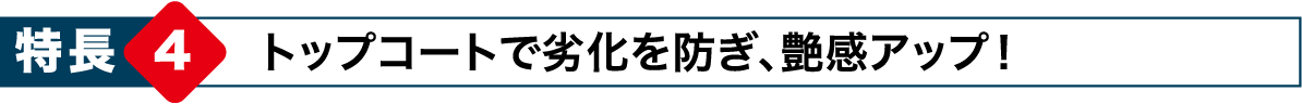 どんなに良い樹脂でも顔料・添加剤などを沢山入れると性能が低下してしまいます。クリヤーは必要な物だけを入れてこそ樹脂本来の力が発揮されます。余分な物は含まない『ピュアシリコンクリヤー』ハイグロストップをトップコートに塗装することで艶感がアップし、塗膜の劣化による光沢低下や退色が低減されます(図1,図2)。